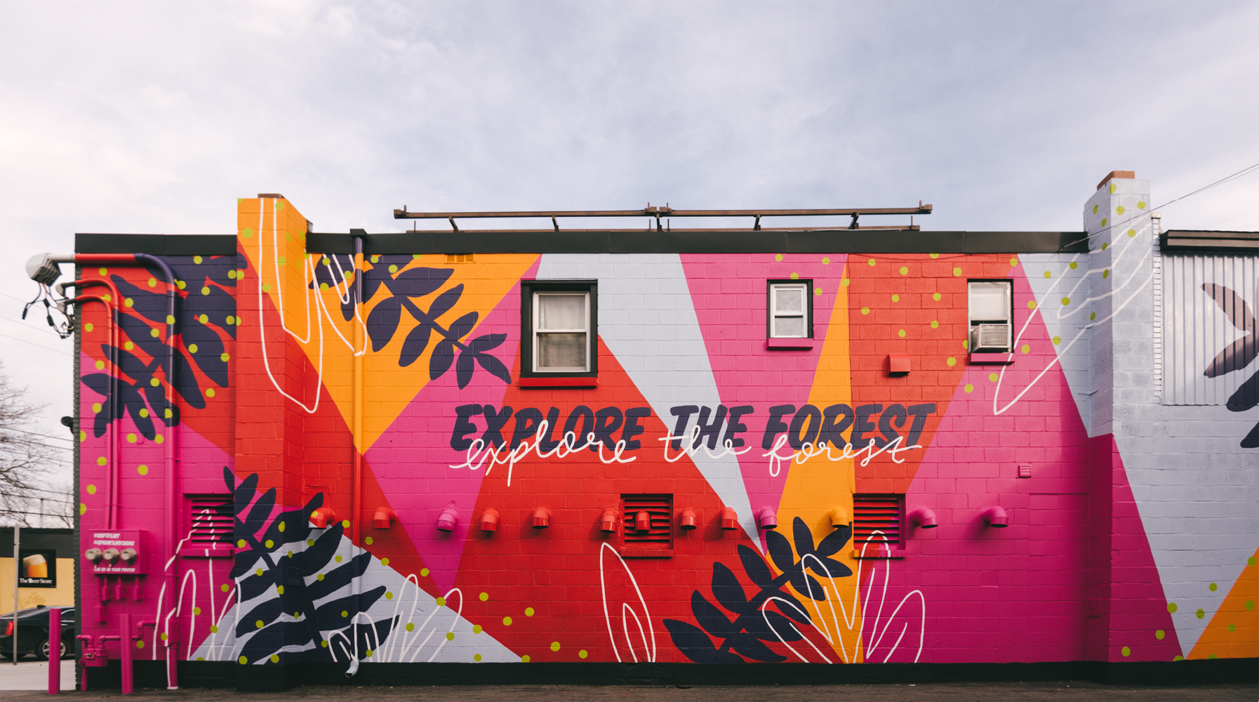 Our message of "Explore the Forest" hopes to motivate people to become tourists in London, to explore new and unfamiliar areas or appreciate a bit more of what's in their own backyard. We welcome (and encourage) everyone to take photos at our mural, use it as a backdrop for your own creative projects, take your new favourite selfie or grab an arepa at Arepa Ink and snap a pic!
